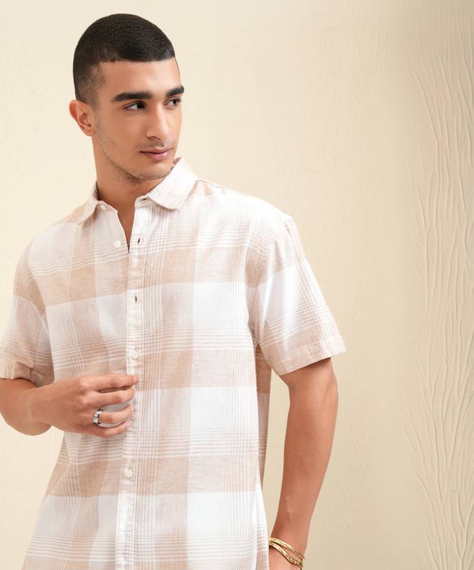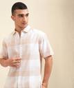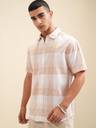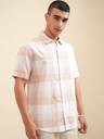 Highlander Men White & Beige Natural Yarn Checked Relaxed Shirt
