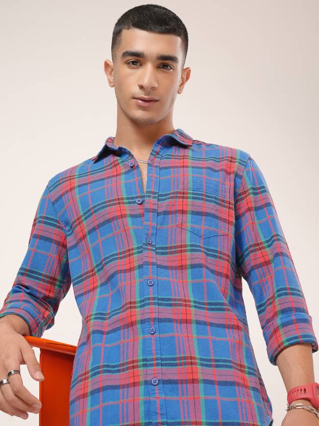Highlander Men Slim Fit Tartan Checks Opaque Checked Casual Shirt