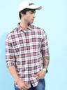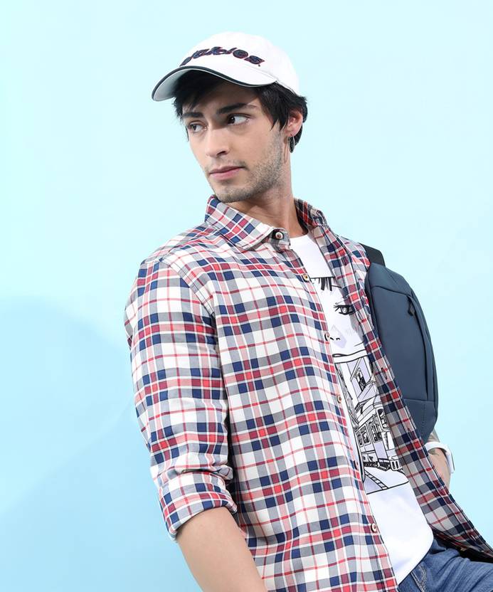 Men Slim Fit Checkered Cut Away Collar Casual Shirt