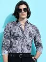 HIGHLANDER Men Printed Casual Grey, White, Blue Shirt