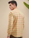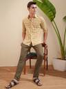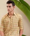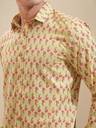 Highlander Men Yellow & Pink Dobby Textured Printed Cuban Collar Relaxed Shirt