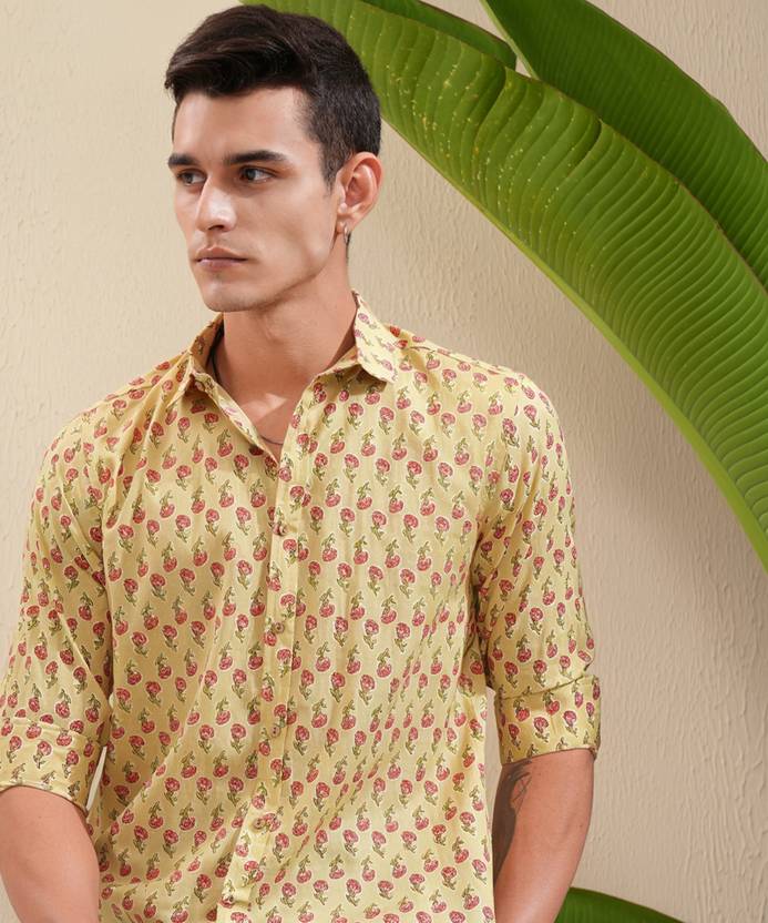 Men Slim Fit Printed Spread Collar Casual Shirt