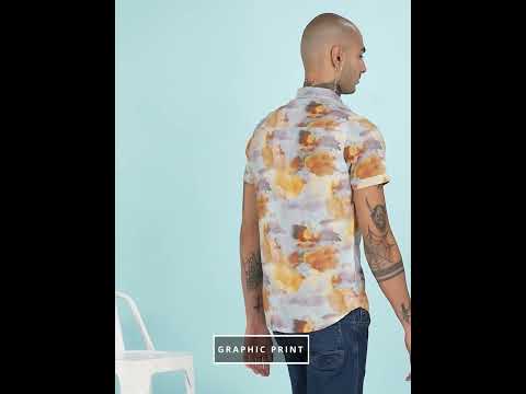 Men Slim Fit Printed Cut Away Collar Casual Shirt