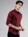 HIGHLANDER Men Self Design Casual Maroon Shirt