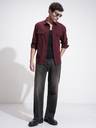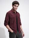 Highlander Men Maroon Red Corduroy Textured Relaxed Fit Shirt