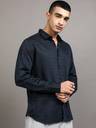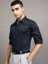 Highlander Men Blue Dobby Textured Solid Occasion Shirt