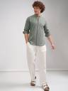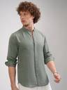 Highlander Men Green Dobby Textured Solid Mandarin Collar Slim Fit Casual shirt