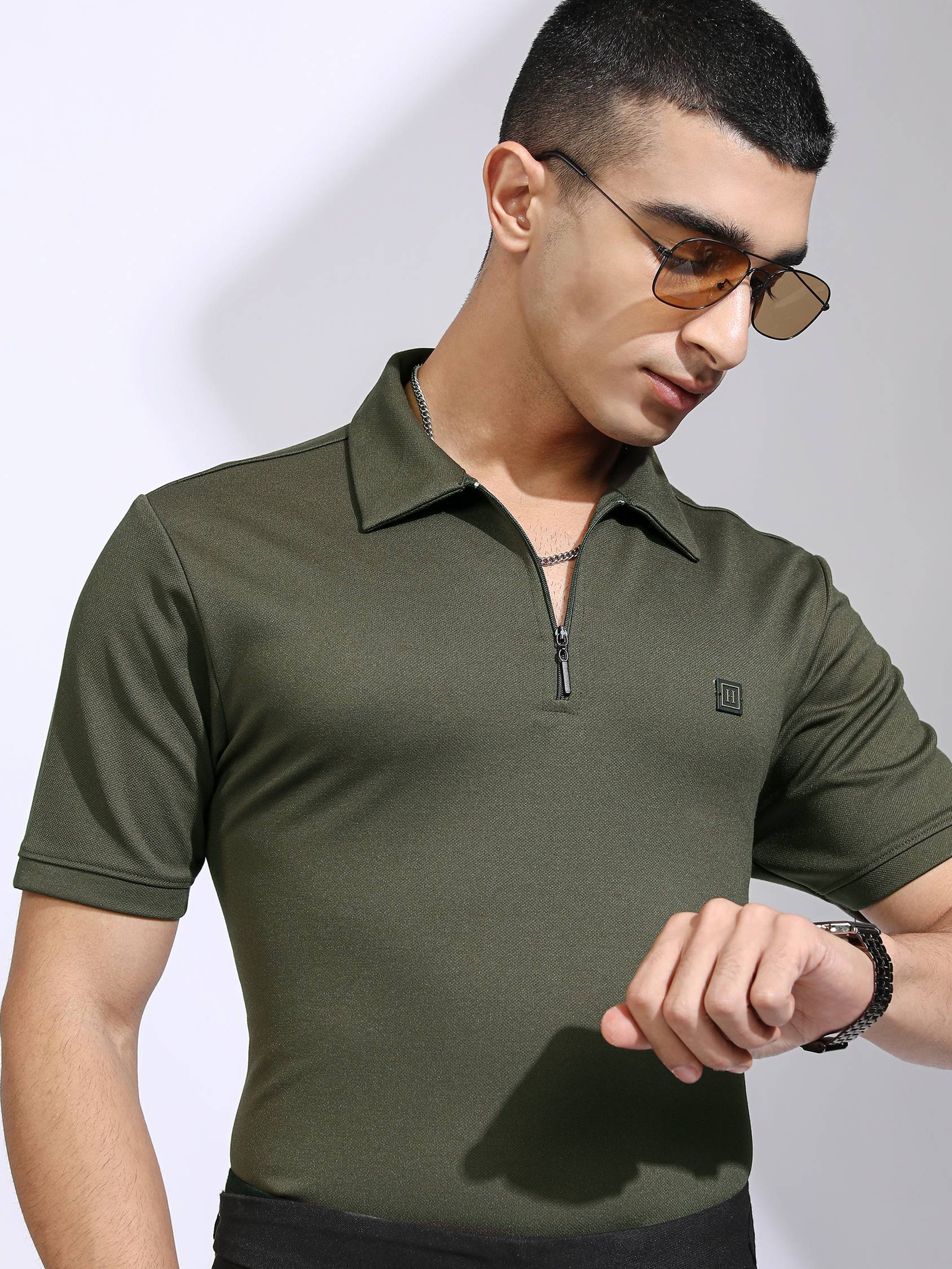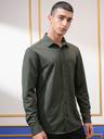 Highlander Men Olive Solid Clean finish Knitted Shirt