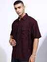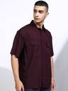 Highlander Men Maroon Solid Utility Pocket Oversized Shirt