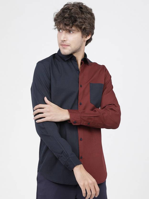 HIGHLANDER Men Slim Fit Solid Cut Away Collar Casual Shirt