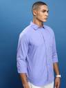 Men Slim Fit Solid Spread Collar Casual Shirt