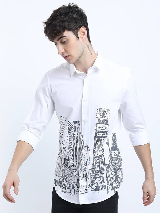 HIGHLANDER Men Solid Casual White Shirt