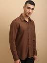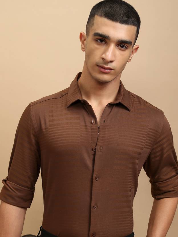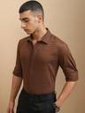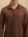 Highlander Men Brown. Dobby Textured Solid Occation Slim Fit Shirt