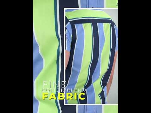 Men Slim Fit Striped Cut Away Collar Casual Shirt