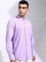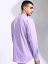 Highlander Men Lavender Dobby Textured Striped Mandarin Collar Casual Shirt