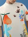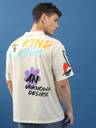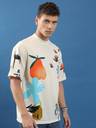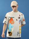 Men Printed Round Neck Cotton Blend Beige T-Shirt