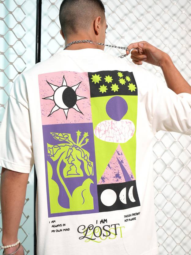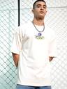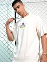 Highlander Men Off White Round Neck Half Sleeve Oversized T Shirt