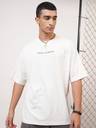 Highlander Men White Oversized Dropshoulder Round Neck Half Sleeve T Shirt