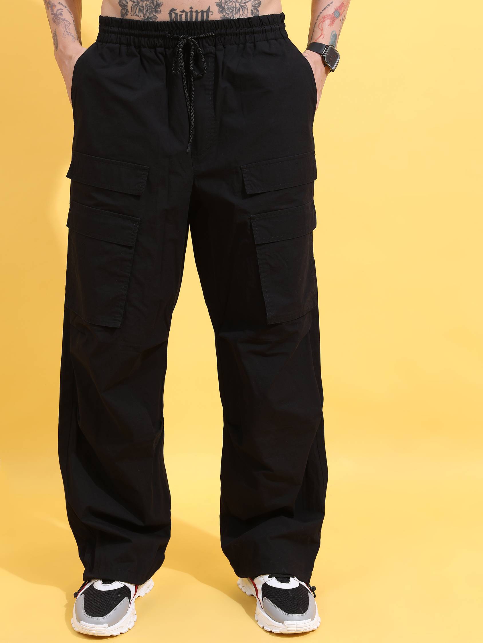 Men Highlander UMBRELLA FIT SOLID WOVEN BLACK Trouser