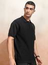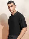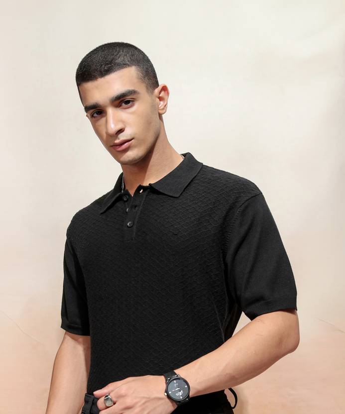 HIGHLANDER Self Design Men Polo Neck Black T-Shirt