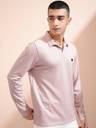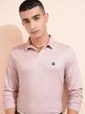 Men Self Design Polo Neck Cotton Blend Pink T-Shirt