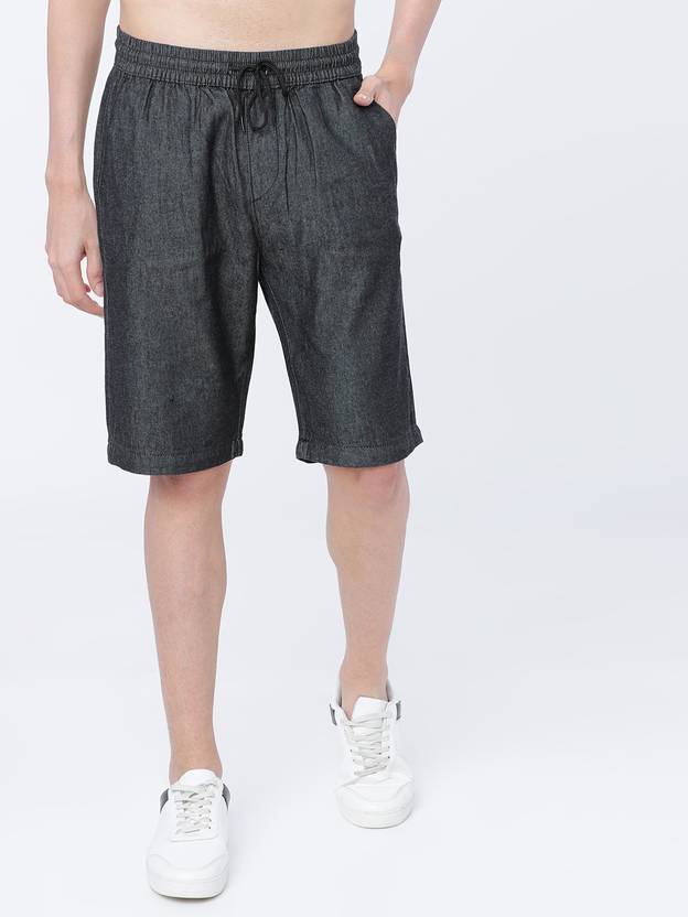 HIGHLANDER Men Black Solid Slim Fit Denim Shorts