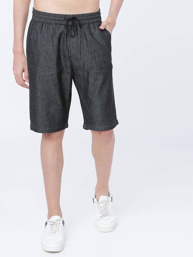 HIGHLANDER Solid Men Black Denim Shorts