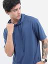 HIGHLANDER Solid Men Hooded Neck Blue T-Shirt