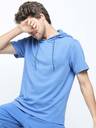 HIGHLANDER Solid Men Hooded Neck Blue T-Shirt