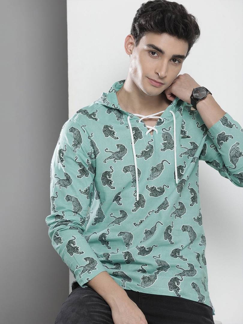 HIGHLANDER Solid Men Hooded Neck Green T-Shirt
