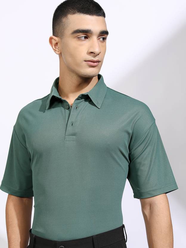 Men Solid Polo Neck Cotton Blend Green T-Shirt