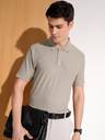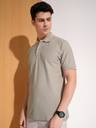 Men Solid Polo Neck Cotton Blend Grey T-Shirt