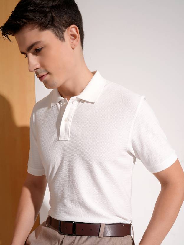 Men Solid Polo Neck Cotton Blend White T-Shirt