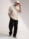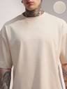 Highlander Men Beige Round Neck Oversized Drop Shoulder Super Stretch Tshirt