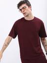 HIGHLANDER Solid Men Round Neck Maroon T-Shirt