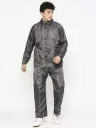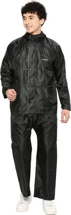 This reversible rainsuit is made with Polyester Taffeta and PVC material which protects you during very heavy rainfall. The jacket has an attached hood and a pant. Front zipper enclosed in a double flap which can be closed with buttons. 2 reverse pleated pockets in the jacket.