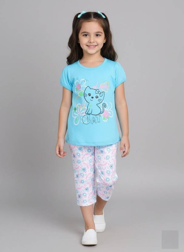 Highlightshop Girls Casual T-shirt Trouser (Sky Blue)