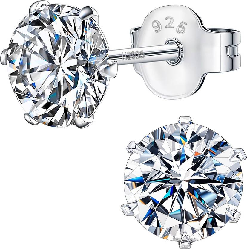 HighSpark Solitaire 6mm Stud Earrings 92.5 Sterling Silver Round Brilliant Cubic Zirconia Tops for Men, Women, Boys and Girls Zircon Sterling Silver Stud Earring