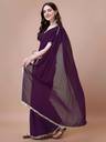 This stunning purple saree is a sophisticated blend of modern minimalism and ethnic charm. Its rich color, lightweight fabric, and subtle sparkle make it a perfect choice for formal gatherings, festive celebrations, and elegant evening events.