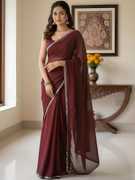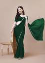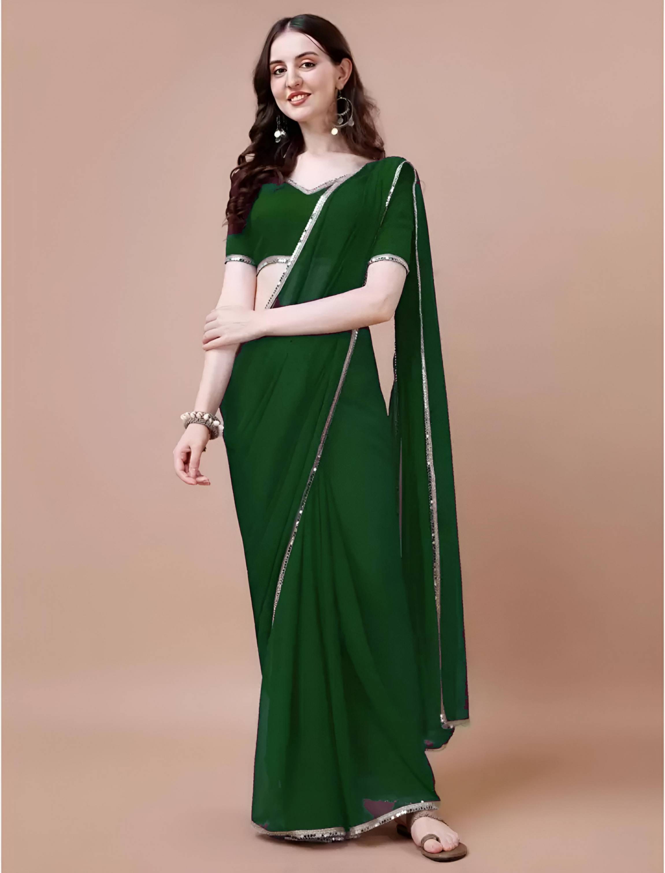HIJA TRENDZ Solid/Plain Bollywood Georgette Saree (Green)