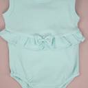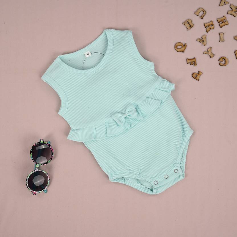 Solid color sleeveless bodysuit with small bow & ruffles add on middle.snap button closures at the crotch area