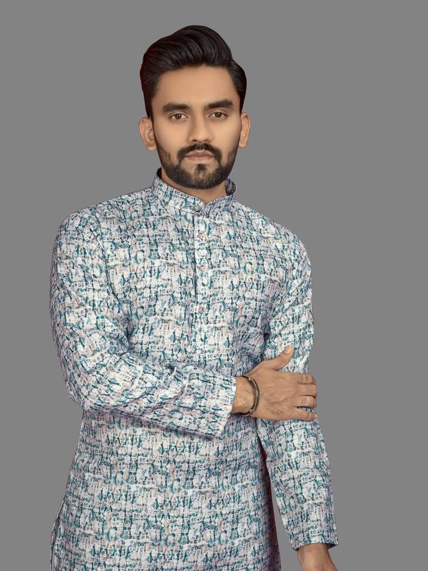 Men Printed Cotton Blend Straight Kurta (Multicolor)