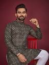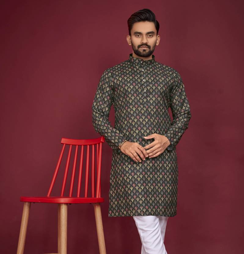 Men Printed Cotton Blend Straight Kurta (Multicolor)
