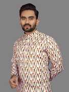 Men Printed Cotton Blend Straight Kurta (Multicolor)