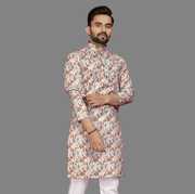 Men Printed Cotton Blend Straight Kurta (Multicolor)