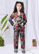 Baby girls Co-ord Set trendy shoulder Full Sleeve that is well-designed. Give her comfort so she can look beautiful and more attractive.Created with soft and fine quality rayon fabric, this set comprises of a co-ord set set. The Pyjama pant comes with elasticated waistline.This beautiful girls clothing set is the epitome of comfort with skin-friendly fabric.This co-ord set consists of a Long shirt and Pant printed Long shirt, has a shirt collar, long sleeves and concealed front placket .Pant has a partially elasticated waistband.