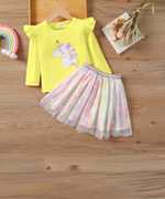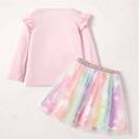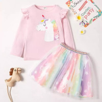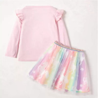 This top and skirt are set to make an ideal gift for birthdays, holidays, or other special occasions. The combination of comfort, style, and charm ensures that this set is a thoughtful and memorable gift that will be cherished by both kids and parents. With its whimsical design and practical features, this set brings joy and happiness to any child's wardrobe.