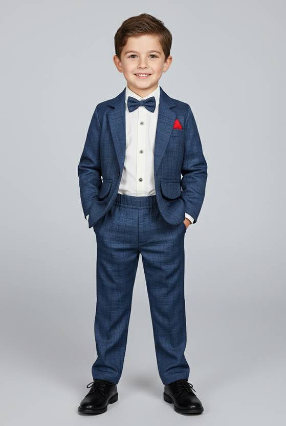 The outfit comes with a contrast pocket square and a bowtie made from the same fabric as the suit and pants. These accessories add a touch of elegance and charm to the overall look. The pocket square provides a pop of colour and detail, enhancing the suit's sophistication. The bowtie, matching the suit and pants, completes the formal appearance, ensuring your child looks dapper and well-dressed.