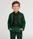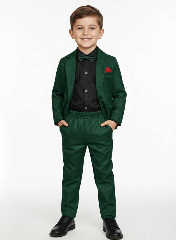 wedding and party boys suit is a 3-piece set consisting Blazer(suit), pants and shirt. The coat in this kids' suit has a standard notch lapel adorned in shimmering motifs.It comes with a bow tie and relaxed Pull on pants . This suit for boys is available in Three colour options: Blue , Gray and Dark Green.Made from Polyseter Fabric, this boys clothes comprises of a full sleeve Blazer will make your little one look ready for an ethnic .Party ,Wedding ,New year ,Shool Function and Festival.