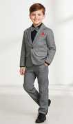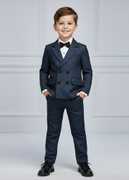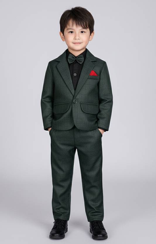 wedding and party boys suit is a 3-piece set consisting Blazer(suit), pants and shirt. The coat in this kids' suit has a standard notch lapel adorned in shimmering motifs.It comes with a bow tie and relaxed Pull on pants . This suit for boys is available in Three colour options: Blue , Gray and Dark Green.Made from Polyseter Fabric, this boys clothes comprises of a full sleeve Blazer will make your little one look ready for an ethnic .Party ,Wedding ,New year ,Shool Function and Festival.